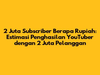 Guys, pernah gak sih kalian kepikiran, seorang YouTuber dengan 2 juta subscriber itu kira-kira penghasilannya berapa ya? Nah, di artikel ini, kita bakal bahas tuntas tentang estimasi penghasilan seorang YouTuber dengan 2 juta pelanggan. Yuk, simak!