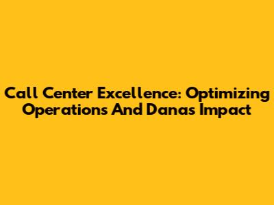 Call Center Excellence: Optimizing Operations And Dana's Impact