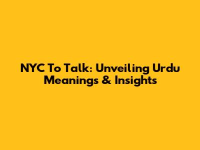 NYC To Talk: Unveiling Urdu Meanings & Insights