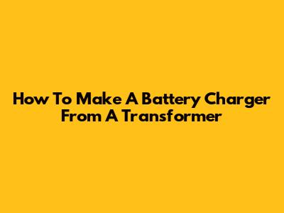 How To Make A Battery Charger From A Transformer