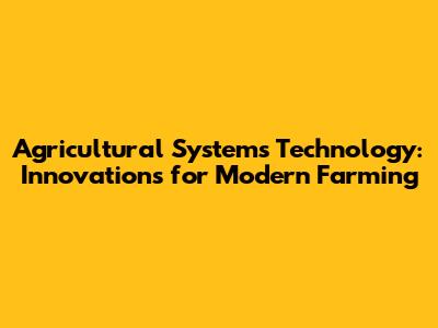 Agricultural Systems Technology: Innovations For Modern Farming