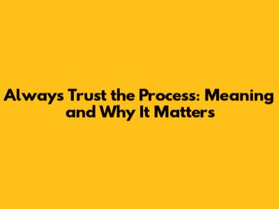 What Does "Always Trust the Process" Really Mean?