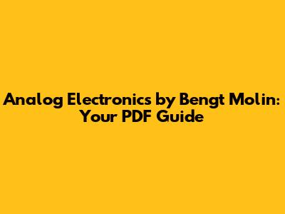 Hey guys! Are you diving into the world of analog electronics and looking for a comprehensive guide? Well, you've probably stumbled upon the legendary "Analog Electronics" by Bengt Molin. This book is a fantastic resource for anyone wanting to understand the nuts and bolts of analog circuits. Let's dive into why this book is so popular and how you can make the most of it, especially if you're searching for the PDF version.