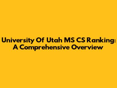 University Of Utah MS CS Ranking: A Comprehensive Overview