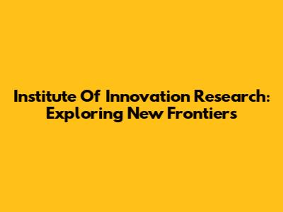 Institute Of Innovation Research: Exploring New Frontiers