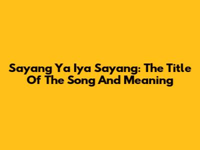Sayang Ya Iya Sayang: The Title Of The Song And Meaning