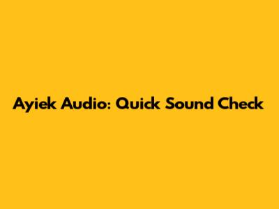 Ayiek Audio: Quick Sound Check