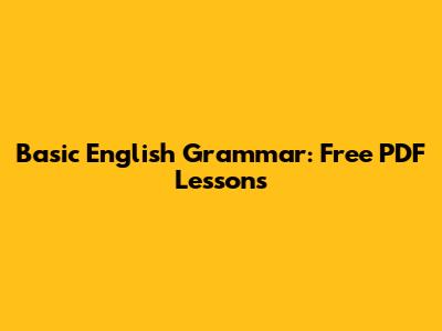 Basic English Grammar: Free PDF Lessons