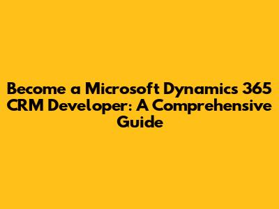 Become A Microsoft Dynamics 365 CRM Developer