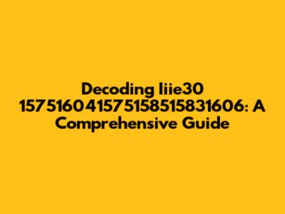 Decoding Iiie30 157516041575158515831606: A Comprehensive Guide