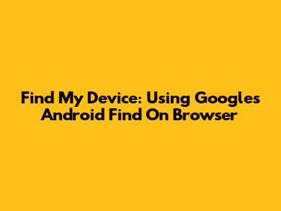Find My Device: Using Google's Android Find On Browser