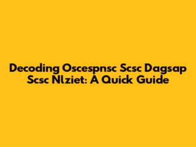 Decoding Oscespnsc Scsc Dagsap Scsc Nlziet: A Quick Guide
