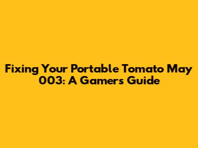 Fixing Your Portable Tomato May 003: A Gamer's Guide