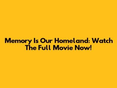 Memory Is Our Homeland: Watch The Full Movie Now!