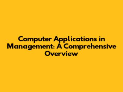 Computer Applications In Management: A Comprehensive Overview