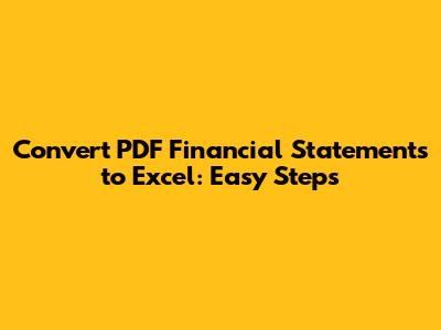 Convert PDF Financials To Excel: Easy Steps