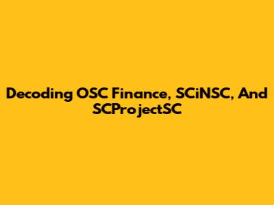 Decoding OSC Finance, SCiNSC, And SCProjectSC