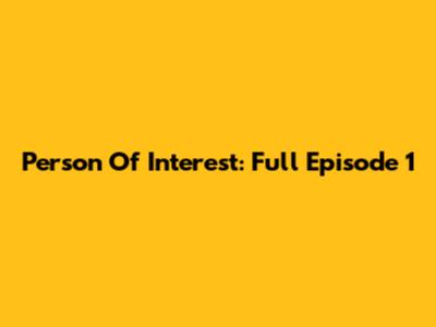 Person Of Interest: Full Episode 1