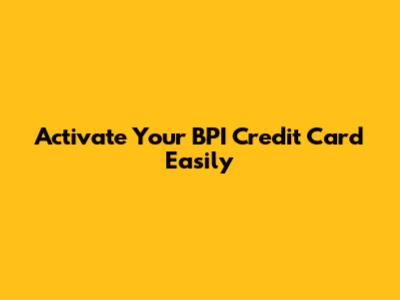 Activate Your BPI Credit Card Easily
