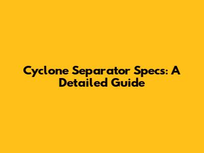 Cyclone Separator Specs: A Detailed Guide