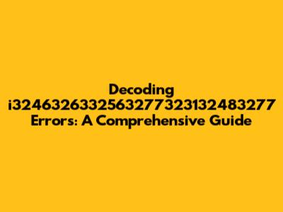 Common Culprits Behind the i3246326332563277323132483277 Error