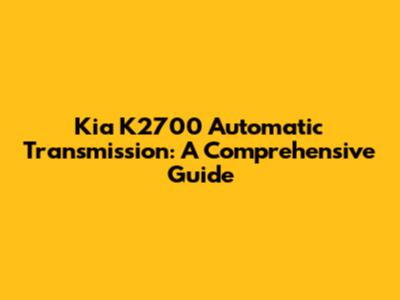 Kia K2700 Automatic Transmission: A Comprehensive Guide