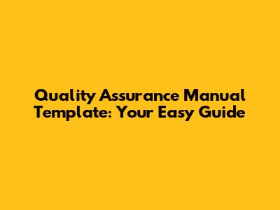 Quality Assurance Manual Template: Your Easy Guide