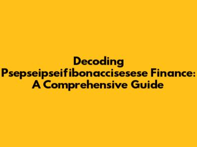 Hey guys! Ever stumbled upon a term in the finance world that sounds like it belongs in a sci-fi movie? Well, Psepseipseifibonaccisesese Finance might just be that term for you. Don't worry, you're not alone! This comprehensive guide will break down this seemingly complex concept into bite-sized pieces, making it easy to understand and even easier to apply in your financial endeavors. So, buckle up and let's dive into the fascinating world of Psepseipseifibonaccisesese Finance!