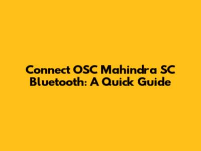 Connect OSC Mahindra SC Bluetooth: A Quick Guide