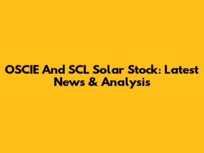 OSCIE And SCL Solar Stock: Latest News & Analysis