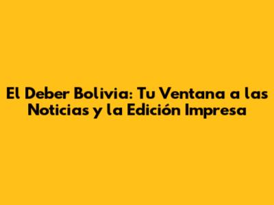 El Deber Bolivia: Noticias, Edición Impresa Y Más