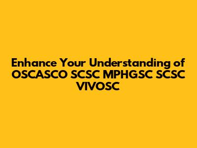 How to Get Started with OSCASCO SCSC MPHGSC SCSC VIVOSC
