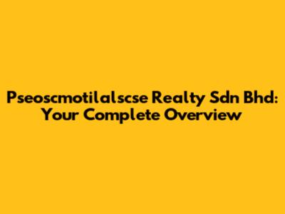 Pseoscmotilalscse Realty Sdn Bhd: Your Complete Overview