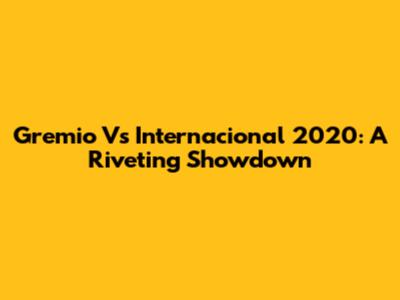 Gremio Vs Internacional 2020: A Riveting Showdown