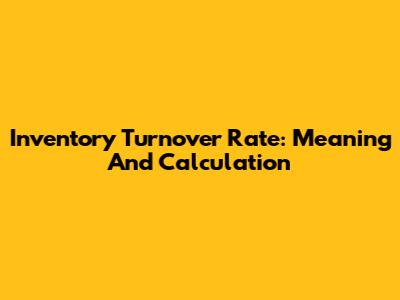 Inventory Turnover Rate: Meaning And Calculation