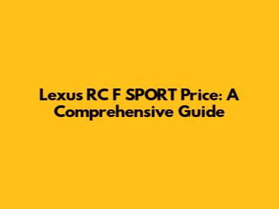 Lexus RC F SPORT Price: A Comprehensive Guide