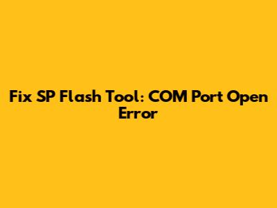 Fix SP Flash Tool: COM Port Open Error