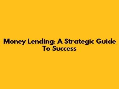 Money Lending: A Strategic Guide To Success