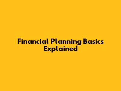 Financial Planning Basics Explained
