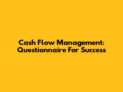 Cash Flow Management: Questionnaire For Success