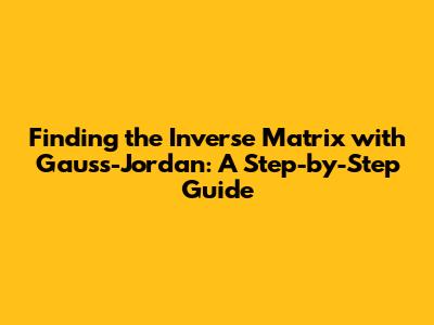 Finding The Inverse Matrix With Gauss-Jordan: A Step-by-Step Guide
