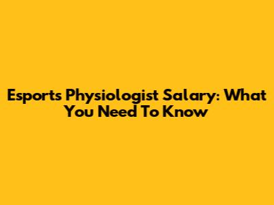 Esports Physiologist Salary: What You Need To Know
