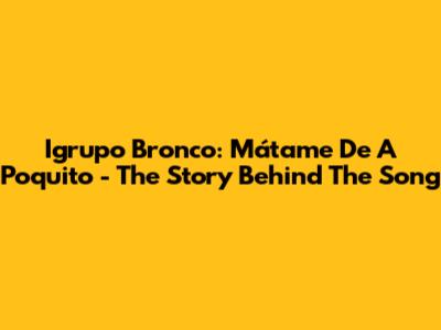 Igrupo Bronco: Mátame De A Poquito - The Story Behind The Song
