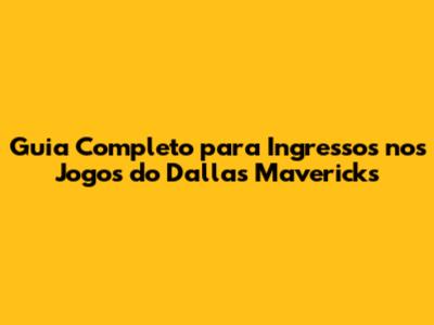Guia Completo Para Ingressos Nos Jogos Do Dallas Mavericks