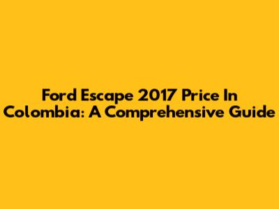 Ford Escape 2017 Price In Colombia: A Comprehensive Guide