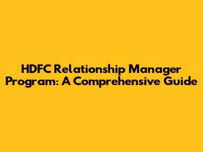 HDFC Relationship Manager Program: A Comprehensive Guide