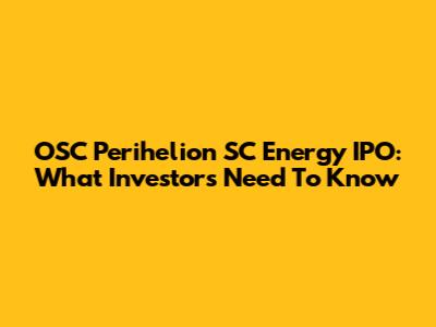 OSC Perihelion SC Energy IPO: What Investors Need To Know