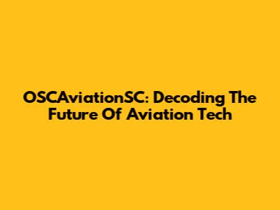 OSCAviationSC: Decoding The Future Of Aviation Tech