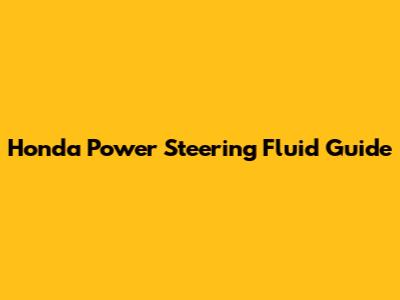 Honda Power Steering Fluid Guide