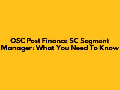 OSC Post Finance SC Segment Manager: What You Need To Know